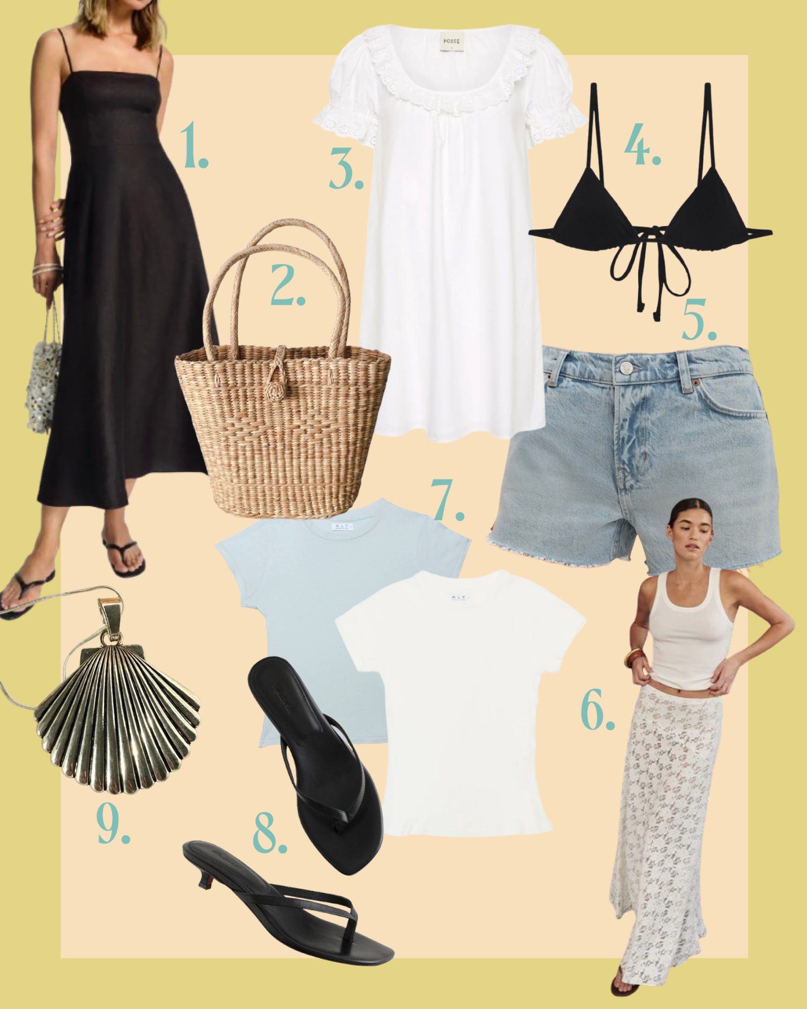 Everything in this roundup is something I’ve been loving, rewearing, wanting (or finally ordered after sitting in my cart for weeks). This summer, I’ve been trying to simplify how I get dressed, buying less, wearing more, and only choosing things I know I’ll reach for often. Think: lots of black, white, and blue, pieces I can mix and match, and details that make it feel like me. The goal is a summer wardrobe that feels effortless, wearable, and repeatable — not just trendy, probably a little uniform-y but still fun!!